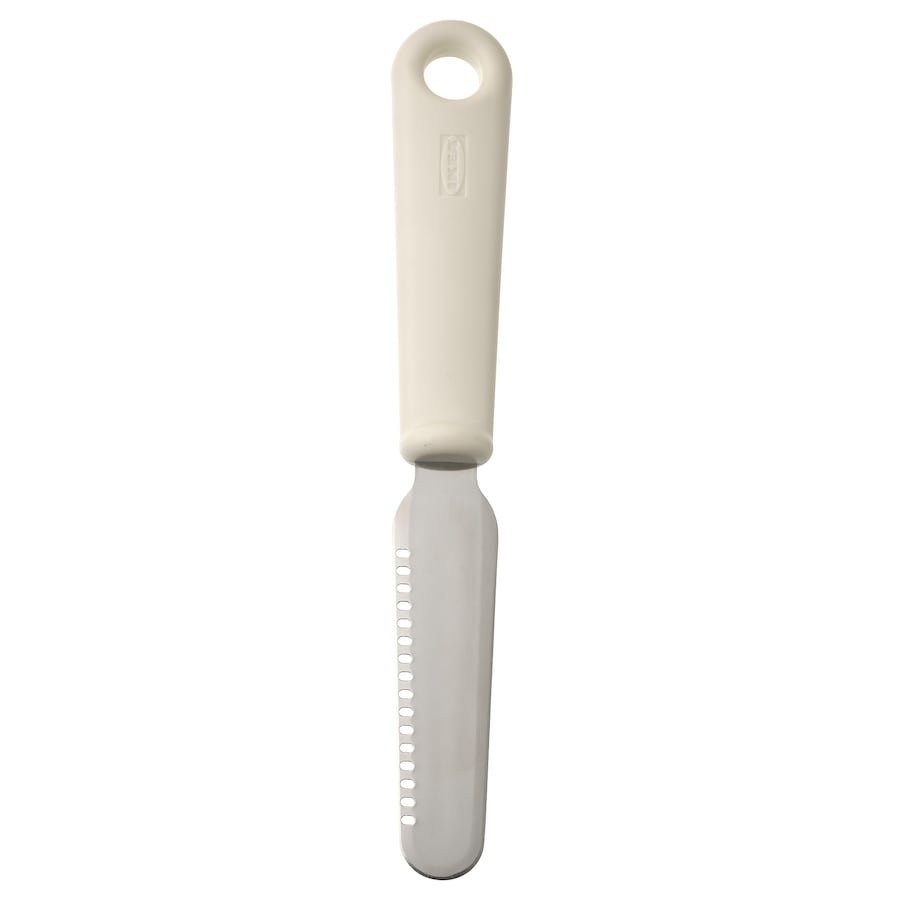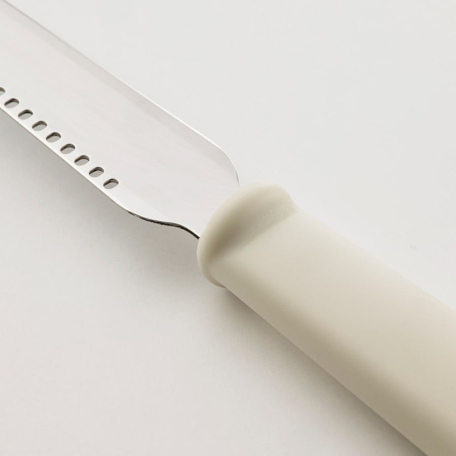 Perfect for butter, cream cheese, or peanut butter, this off-white spreader is a simple yet useful tool for any breakfast or baking routine. Its smooth edge ensures even spreading without tearing bread.